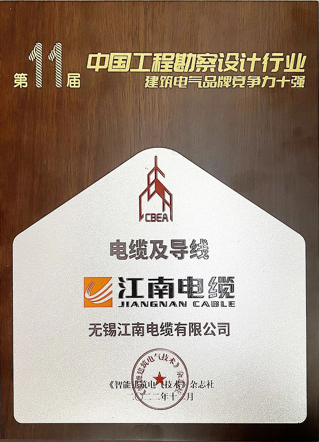 江南電纜榮獲第11屆建筑電氣品牌競爭力十強!
